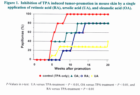 prevention of topical skin cancer20. An ursolic acid/ oleanolic acid ointment inhibited